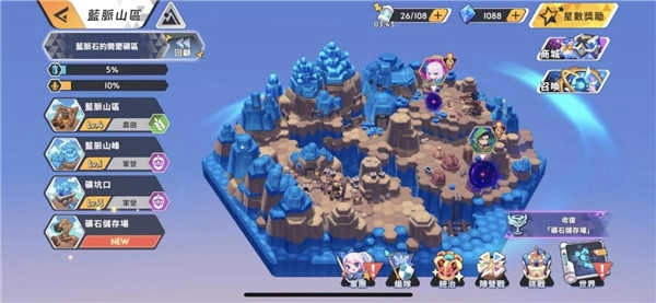 主线共包含5个大型区域,每个区域由3个普通小关卡与1个BOSS关卡构成。玩家只要以三颗星的成绩通关,就能解锁相应角色与兵种。而且,每个区域的场景都独具特色,各不相同。
