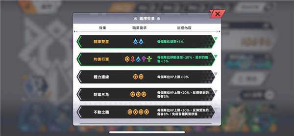 在这个游戏里,仅在宗庙试炼时能够使用6个英雄,其余时候都只能以3个英雄搭配3个兵种进行战斗。并且,队伍会依据职业配置的差异获取不同的增益效果,这是攻略关卡的关键所在。