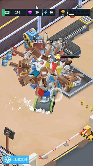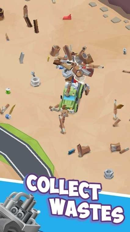 2、玩家可通过拖动屏幕来控制车辆收集废料。