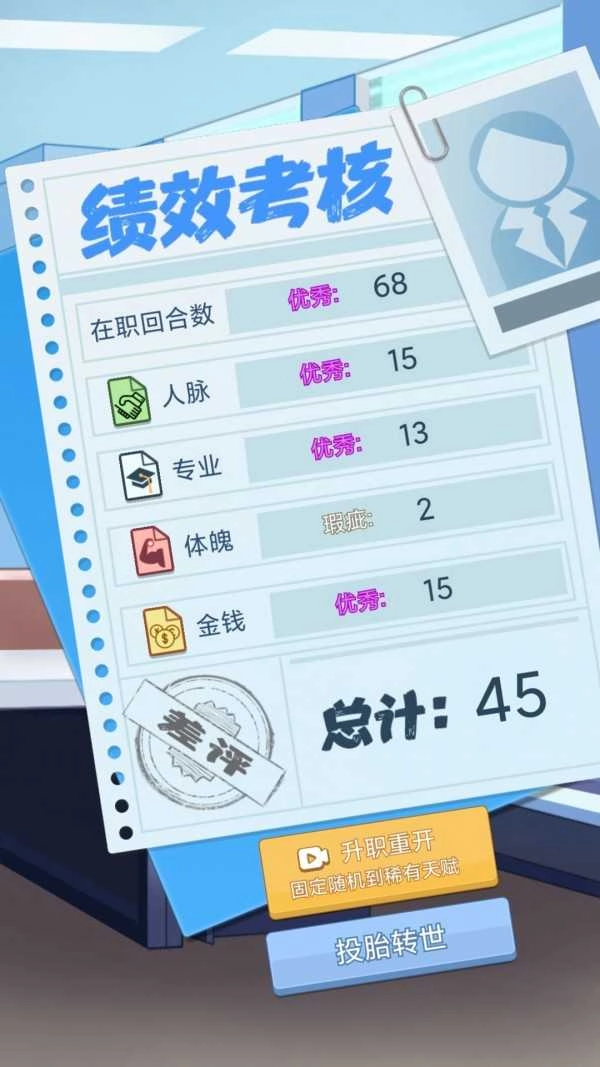 1. 该游戏运用经典的模拟玩法,与人生重开模拟器颇为相似。