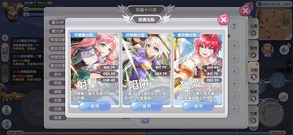推荐加点指的是系统依据每个职业所推出的推荐加点方式,每个职业均具备三种不同的加点方向,通常分为挂机类、陷阱类以及PK类。