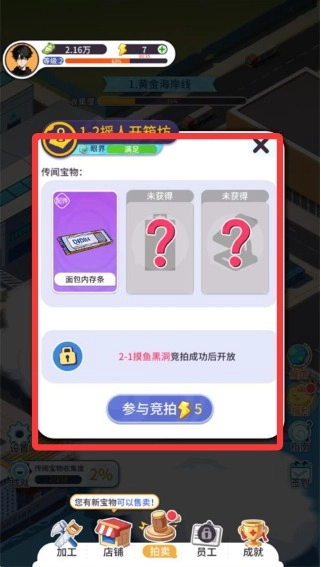 4、当等级逐步提升,会陆续解锁更多区域以及价值更高的箱体。不仅如此,还能够开设分店、派遣员工去寻宝,进一步拓展经营版图。