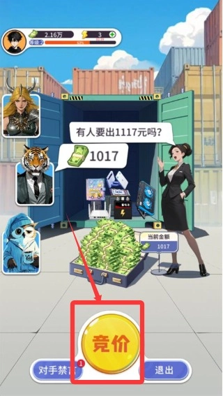 2、在竞拍过程中,需点击竞价来竞拍集装箱内的商品,最终商品归出价最高者所有。