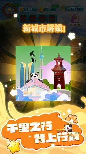 3、每个城市都有独一无二的景观,还有诸多任务等你去完成。话说,谁会不想拥有一只憨态可掬的大熊猫呢?