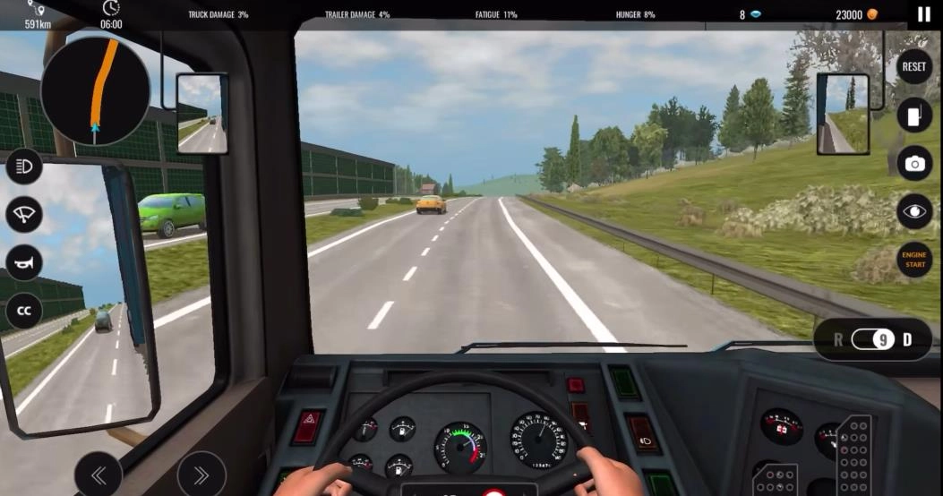 除此之外,游戏中丰富多样的天气系统以及动态交通AI,为游戏增添了更多的不确定性与挑战。遇到下雨天,就得开启雨刷,同时留意低能见度带来的影响;当油量不足时,警告灯便会闪烁,及时提醒你赶紧寻找加油站。无论是驾驶时的手感、视觉呈现效果,还是整体的沉浸体验,都使得这款游戏成为当下市场上最具人气的卡车模拟游戏之一。1. 逼真还原职业卡车司机的日常,融合运输任务与自由探索的游玩方式。