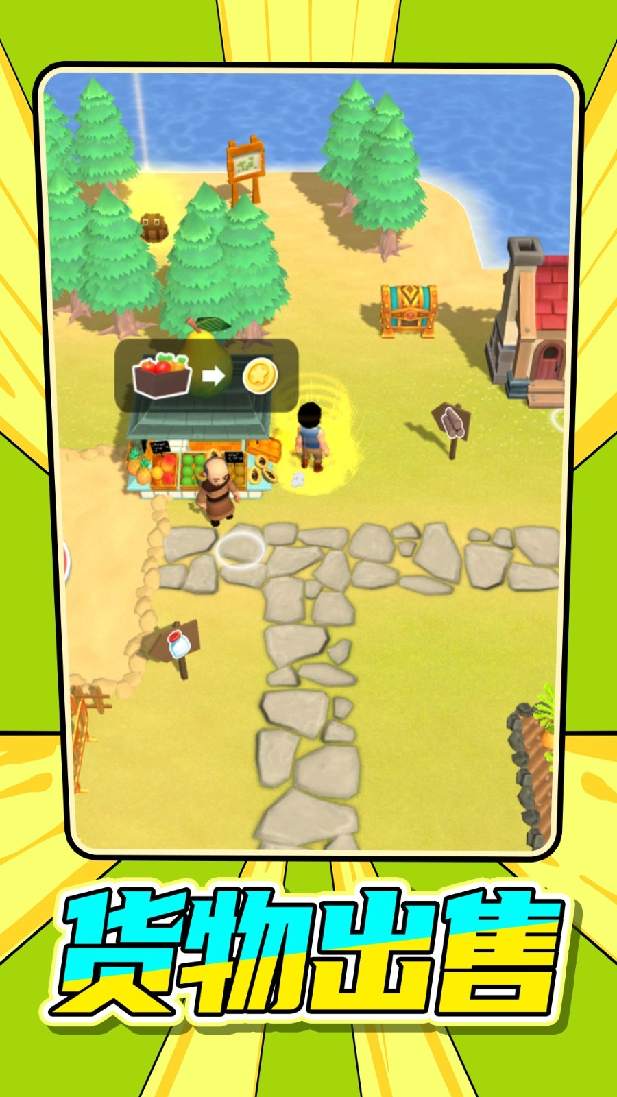 4. 把收获的作物运到商人处,就能兑换金币。接着用这些金币去解锁岛屿上更多的区域吧!