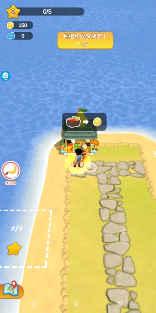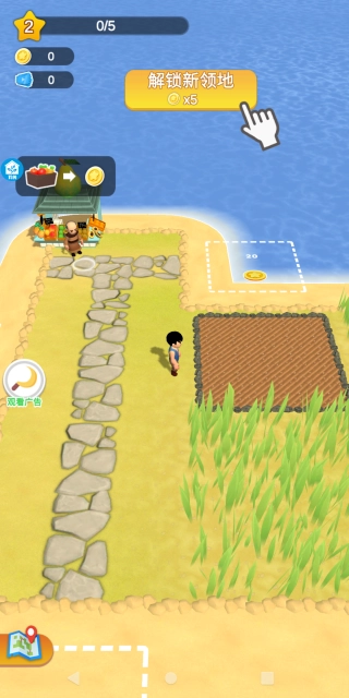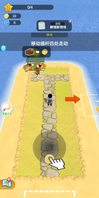 2. 借助虚拟摇杆移动至目的地,就能解锁田地。