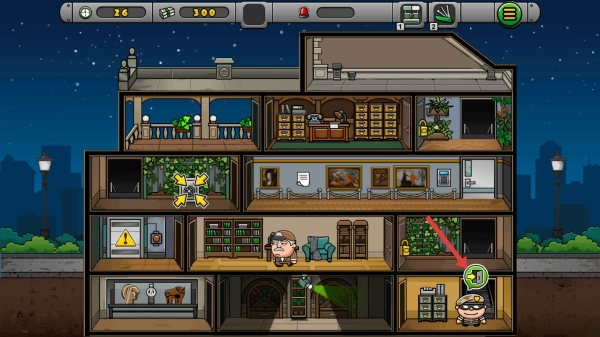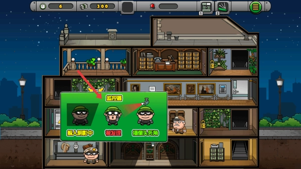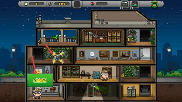 3、成功避开摄像头后,点击图标,顺着楼梯登上二楼,接着继续游戏。