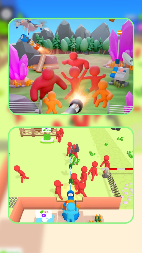 1、橡胶风格:游戏里的关卡、人物以及僵尸的画风与动作形态均呈现出这种橡胶风格,能为玩家带来更多欢乐与射击时的畅快体验。