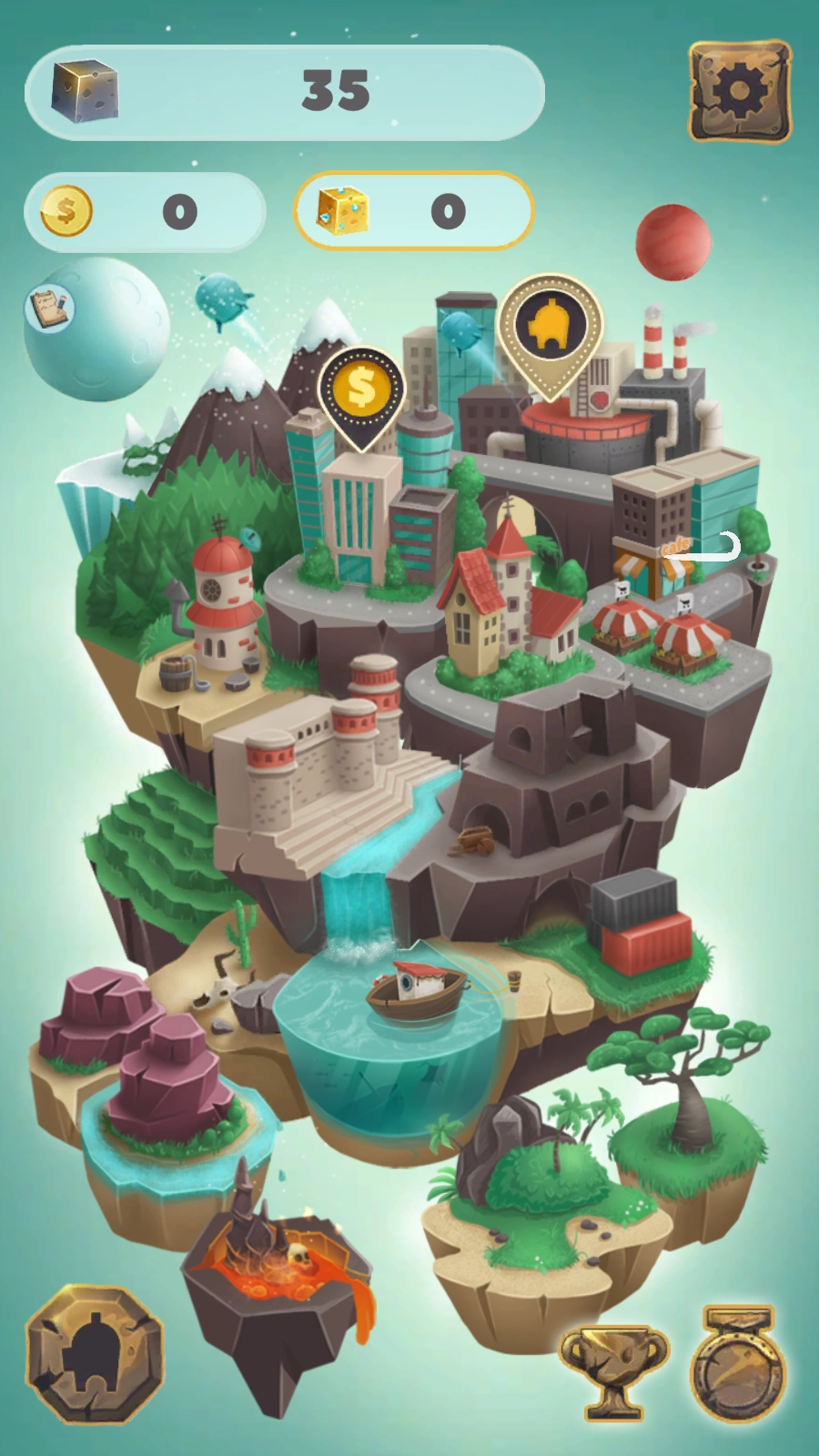 2、收集完成后,可依照箭头所指,点击左下角的地图按钮,进入游戏世界地图,去探索更多区域。