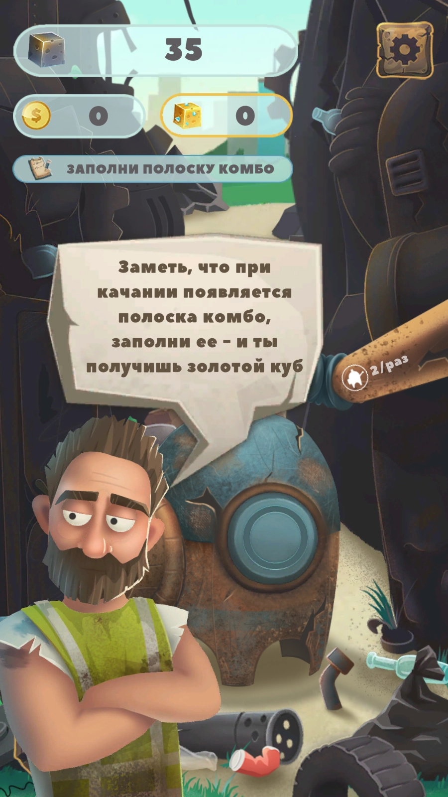 1. 进入游戏后,依照指引需收集10个垃圾立方体,完成初始任务,从而开启垃圾场经营流程。