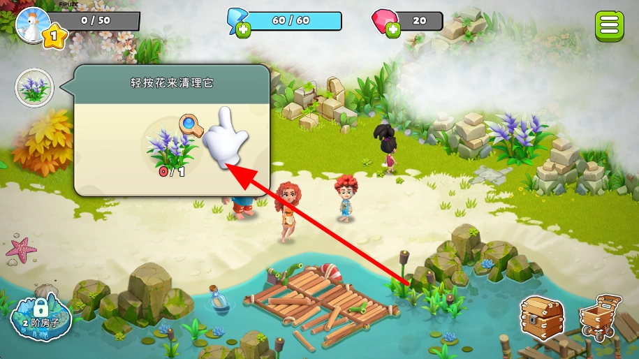 1. 新手玩家碰到花草时,轻轻点击花草就能清理它们。清理花草不仅能使岛屿环境变得更加整洁,还为后续的建设等操作奠定基础。