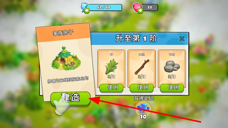 3、家族房子建成后,可对其执行升阶操作。通过升级建筑来开启新的阶数,升阶不仅能获取相应奖励,还能提升岛屿建设的成效。