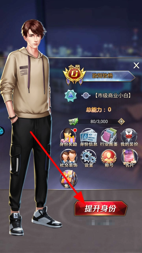 4、当达到特定条件时,点击“提升身份”按钮,即可提升自己在游戏中的身份等级。身份提升之后,能够解锁更多经营权限与内容,使经营更具深度。