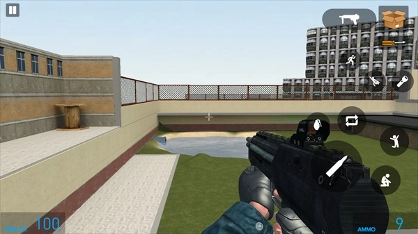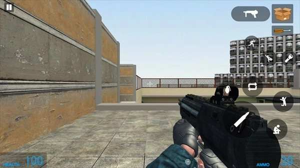 4、在游戏中,屏幕左边用于控制玩家移动,右边则负责控制玩家进行攻击、跳跃、蹲下等多种动作。玩家只需点击屏幕最上方的武器按钮,就能自由挑选各类武器,尽情体验丰富多样的地图。