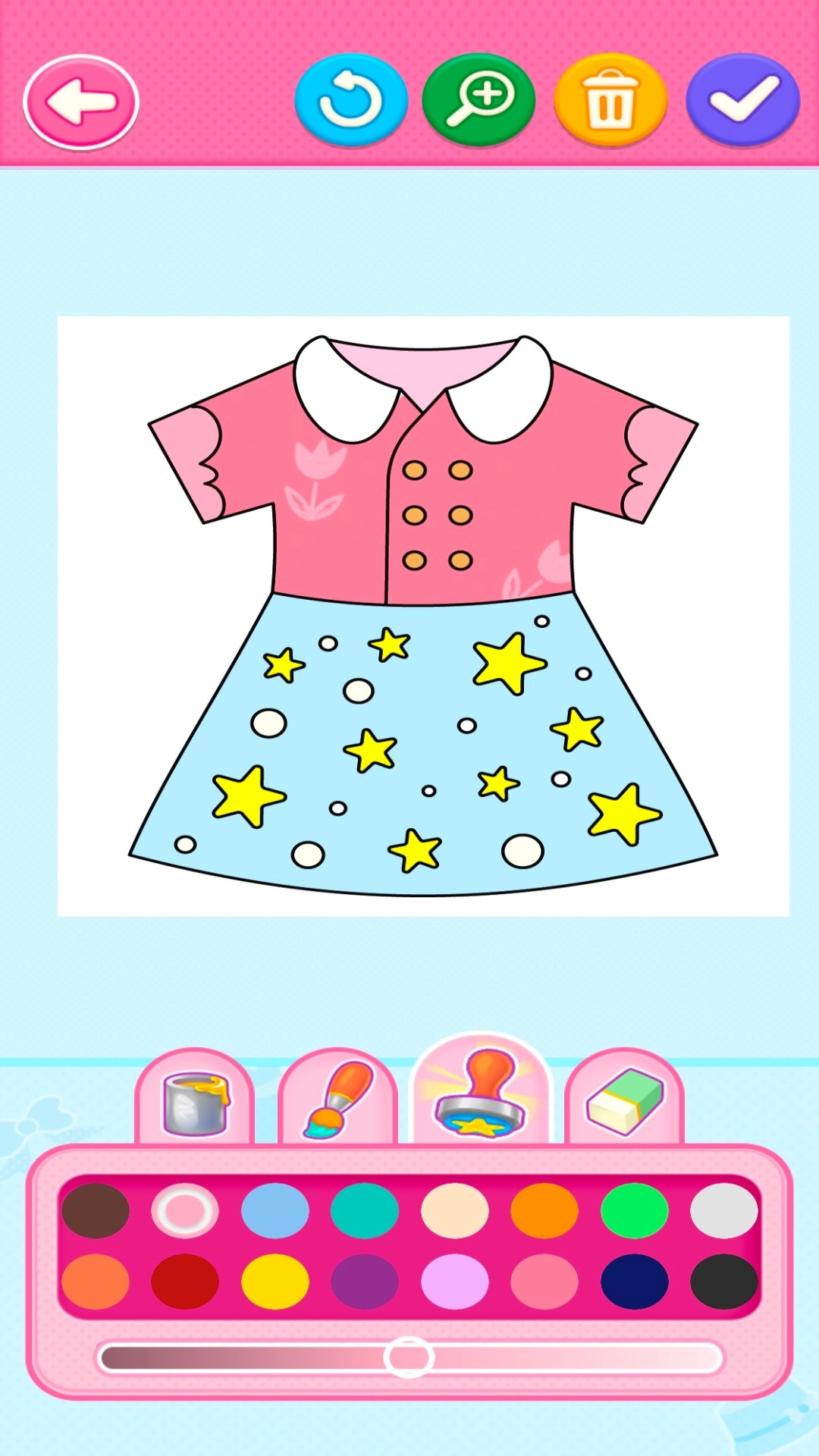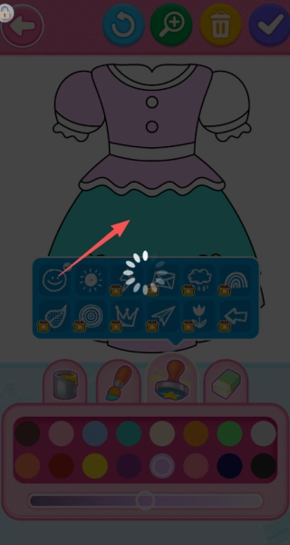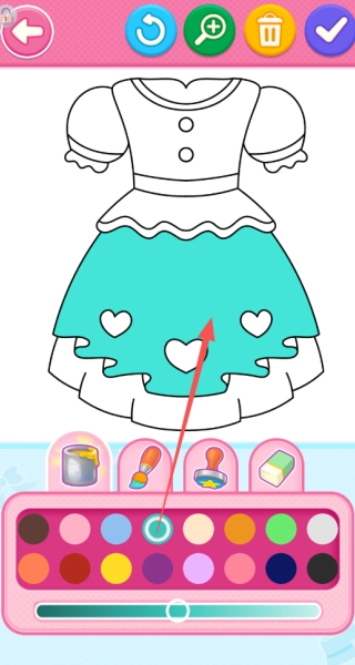 2、借助丰富的调色板工具,您能够为服装的各个空白区域填充自己喜爱的色彩组合,达成精准上色的效果。