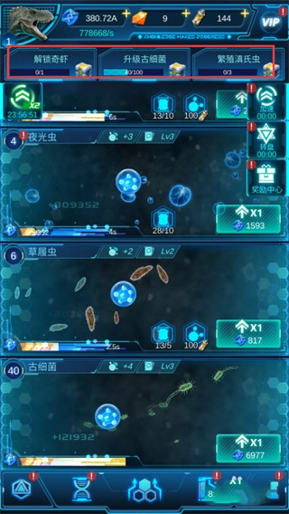 5、于图鉴面板能够对生物进行升级,以此提升生物的DNA产量,具体情形如图所示。