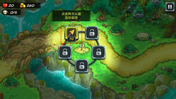 4、当玩家进入关卡后,能够点击空地上的棋子来建造防御塔。
