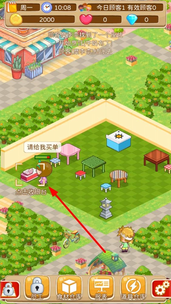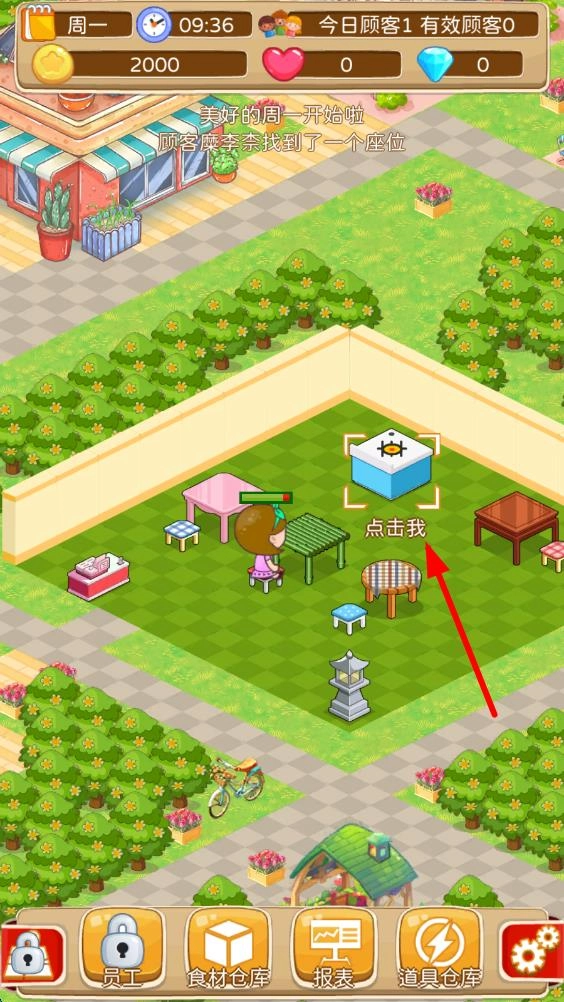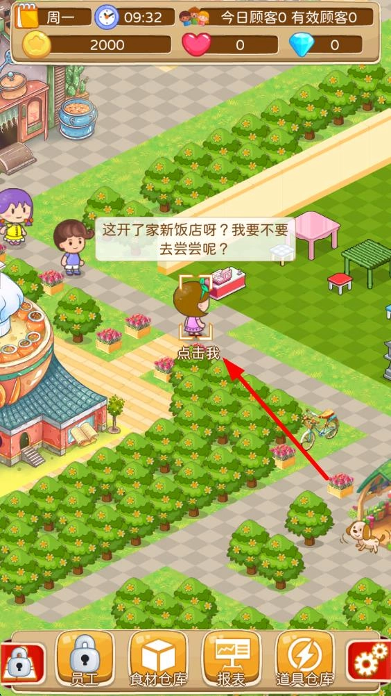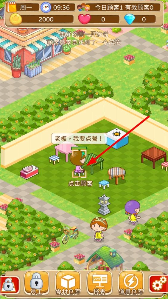 1. 进入游戏之后,注意场景里带有提示的顾客。一旦看到顾客来到门口,点击相应顾客,即可开启顾客进店流程。