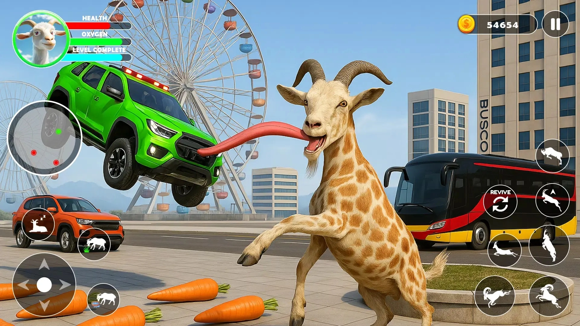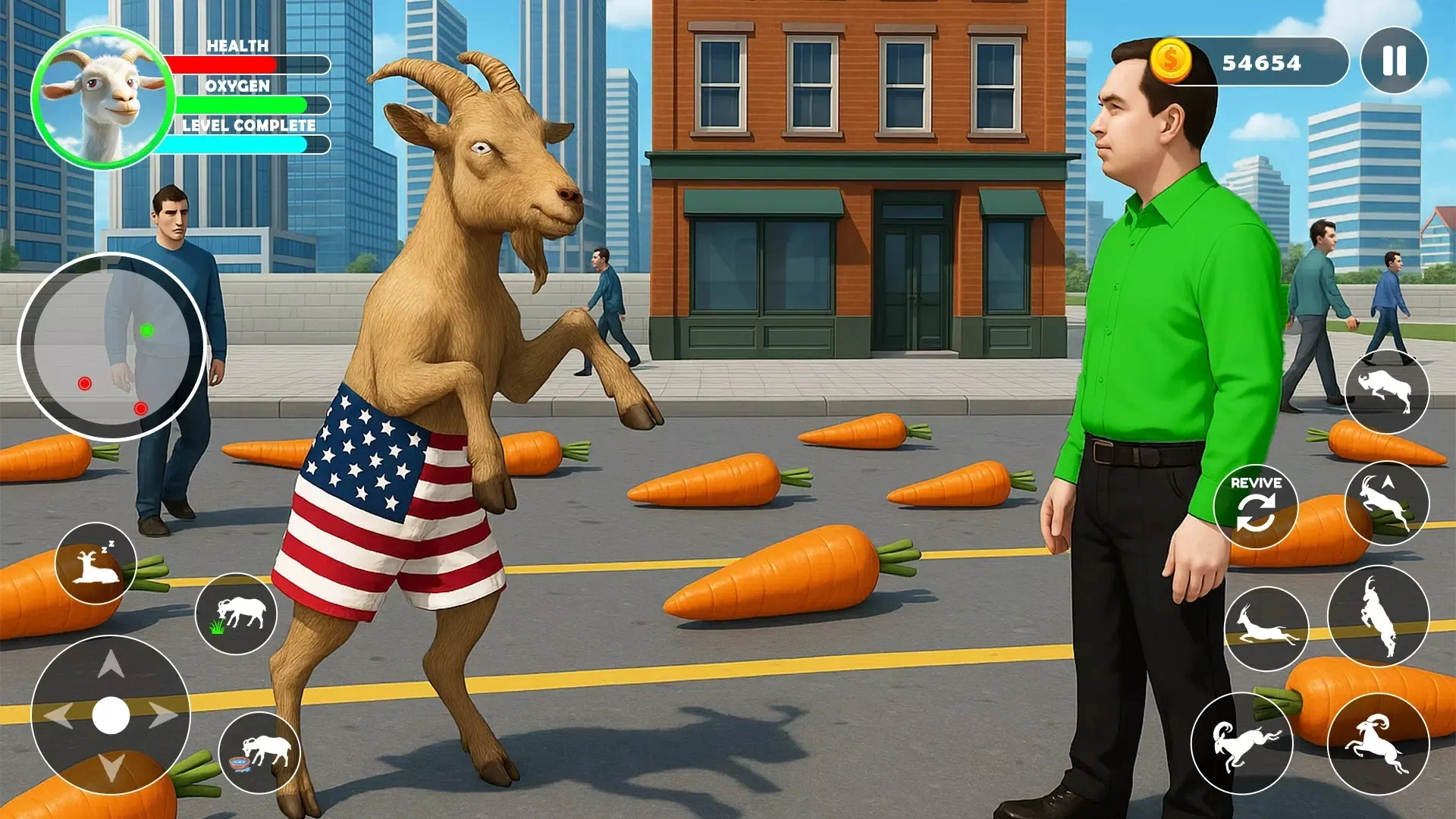 冲撞与撞击:山羊具备冲撞车辆、行人和建筑物的能力,会造成不同程度的破坏。这种能力在制造混乱以及帮助人们解压方面效果显著。
