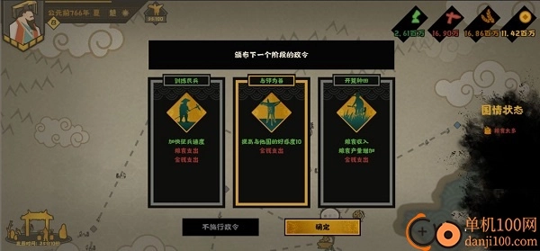 可以在定期举行的朝会中,制定下一阶段的国家策略,像发展、外交、进攻、征兵、裁军等,结合国家的其他举措,才能做到攻无不克、战无不胜。此外,我还为每个国家设计了专属的独特方针,以此让每个国家更具特色。