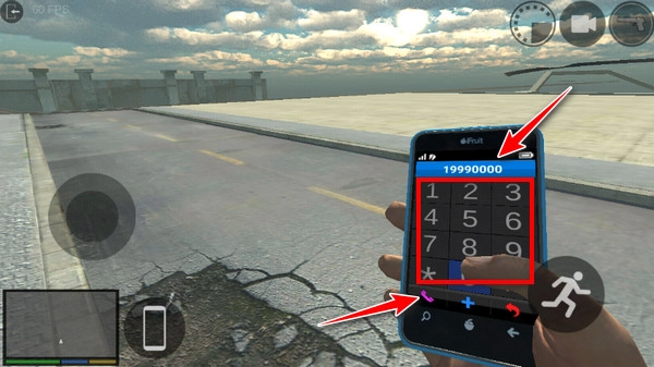 洛杉矶犯罪的所有作弊码都通过这个菜单来输入,我们可以尝试输入19990000,然后点击拨号按钮确认!