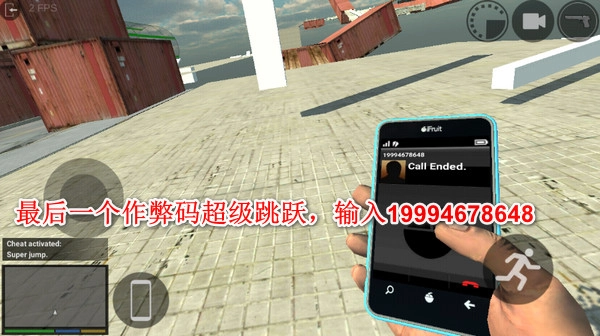 最后一个作弊码是超级跳跃,输入19994678648就能激活超级跳跃功能,需要注意的是,一旦起跳就无法再降落了!