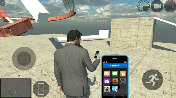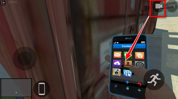 建议切换成第一人称视角会更方便查看手机菜单,我们点击手机里的通讯录图标就可以了。