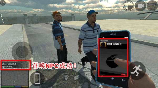 拨出号码后稍作等待,要是左下角弹出提示,就说明作弊码输入成功了!抬头一看,你召唤的人已经出现在眼前了。