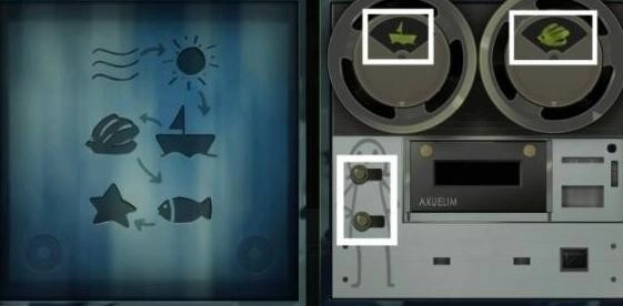 在录音机里,依据文字给出的线索,转动完相应的圈数之后。