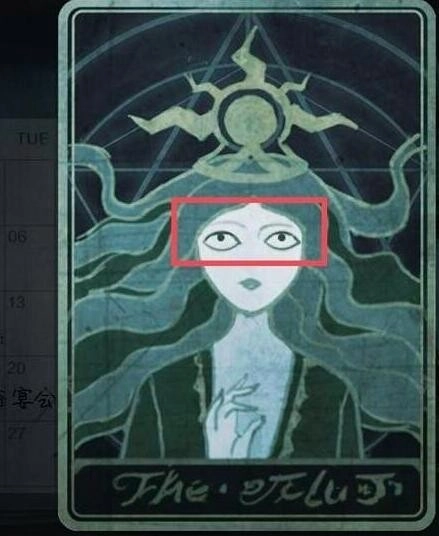 塔罗牌上有一双眼睛,和柜子上的眼镜是对应的,按照日历的顺序,就能找到不同场景里的衣服。