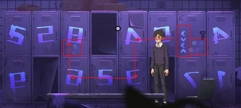 通过柜门上的脚印来确定起始位置,箭头指示行进方向。