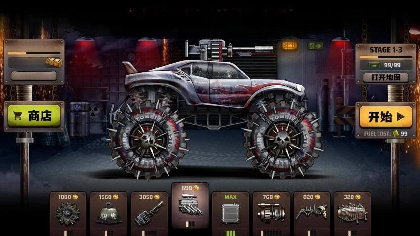 1、趣味冒险:充满趣味的冒险任务,驾驶专属车辆持续闯关,更高效地消灭所有僵尸。