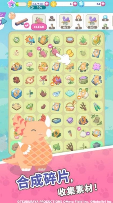2、把相同的碎片凑成一对合并消除,就能积攒出各种素材。用这些素材制作玩具、道具,摆放到你布置的“栖息地”里,可爱的小怪兽就会主动上门啦!
