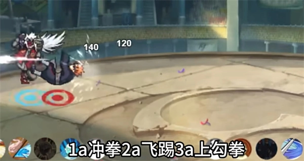 普通攻击总共有六段,第一段是推掌,第二段是多重掌,第三段是振掌,第四段为突进毛针抓取,第五段是砸下动作,第六段则释放大炎弹。