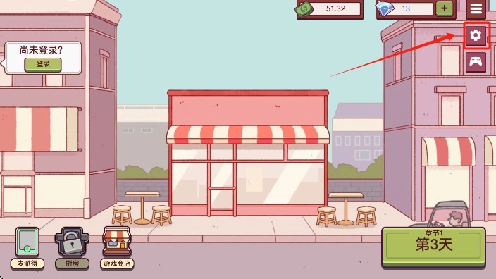 1、在本平台安装可口的比萨国际服游戏,启动游戏进入主界面后,点击右上角的齿轮形状图标