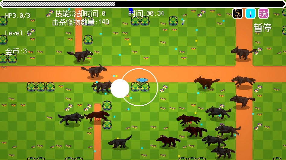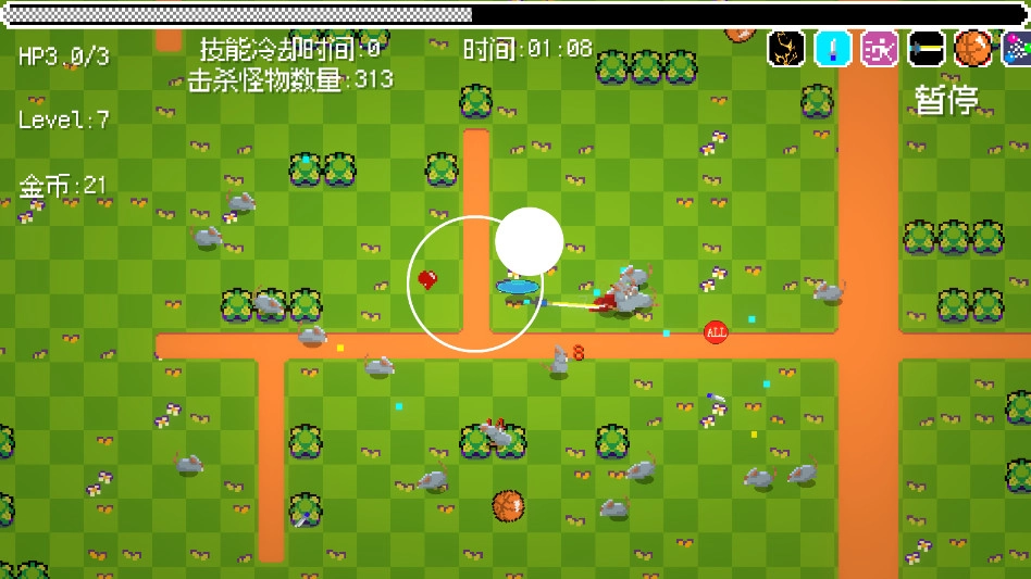 4.在攻击怪物的过程中,也要留意躲避它们的攻击;成功击败怪物后,会随机掉落奖励,此时你可以选择新的技能。