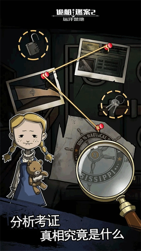 诡船谜案2是一款悬疑解谜类手机游戏,改编自多部知名小说。玩家将与同伴一同在蒸汽游轮和废弃渔船上展开探索,揭开诡异事件背后的真相,将幕后凶手绳之以法。游戏以密室逃脱式的解谜玩法为核心,玩家需在多个场景中搜寻线索,通过拼凑关键信息形成完整的线索链,从而清晰把握故事脉络。喜爱解谜游戏的玩家不妨一试!