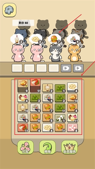 3、游戏过程中,可使用底部的【打乱】、【移除】等功能按钮,调整食物布局。