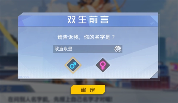 1、进入双生幻想,会进入一段讲解游戏剧情的视频(可跳过),首先进游戏肯定就是为自己取名字了。