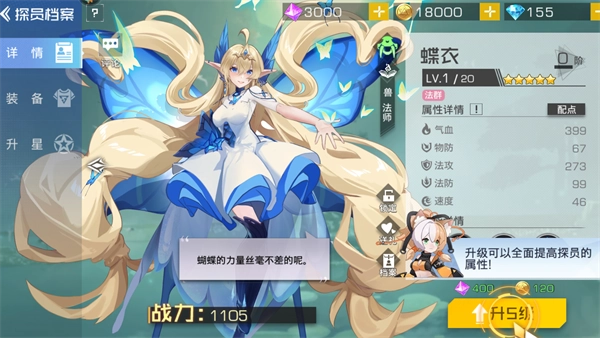 6、角色招募过来,当然要给她进行升级了,能更好的快速解决敌人,点击进入探员档案界面,升级,同时为她一键装备武器。