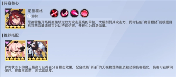 尼德霍格开场将直接锁定敌方攻击最高的单位,大幅削弱其攻击力,同时技能“痛苦鞭挞”则根据目标当前血量造成百分比持续伤害,并转化为自身血量。