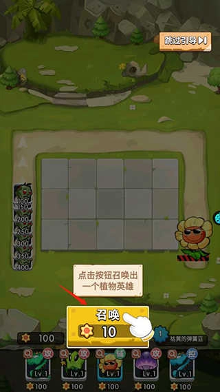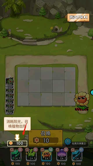 2、只需点击召唤按钮,即可召唤出一株植物。