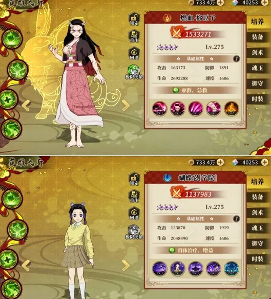 义勇学院和水柱义勇是两张不同的卡牌。在新区,由于大家后排角色的血量普遍不高,学院义勇的表现极为强势,致使不少人会将义勇当作主力输出(主c)。但要注意,千万别给他投喂过多食物,过度使用的话,后期还得替换,会比较麻烦。