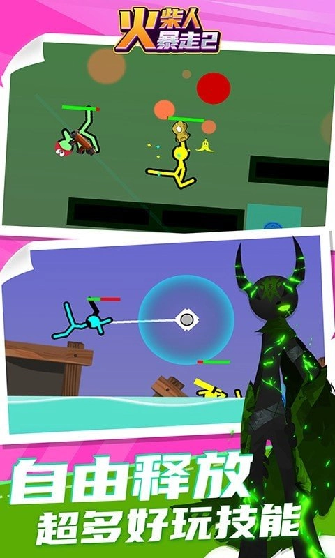 1.这是一款经典的火柴人主题动作战斗竞技游戏的新作品,带来了更多的游戏玩法。