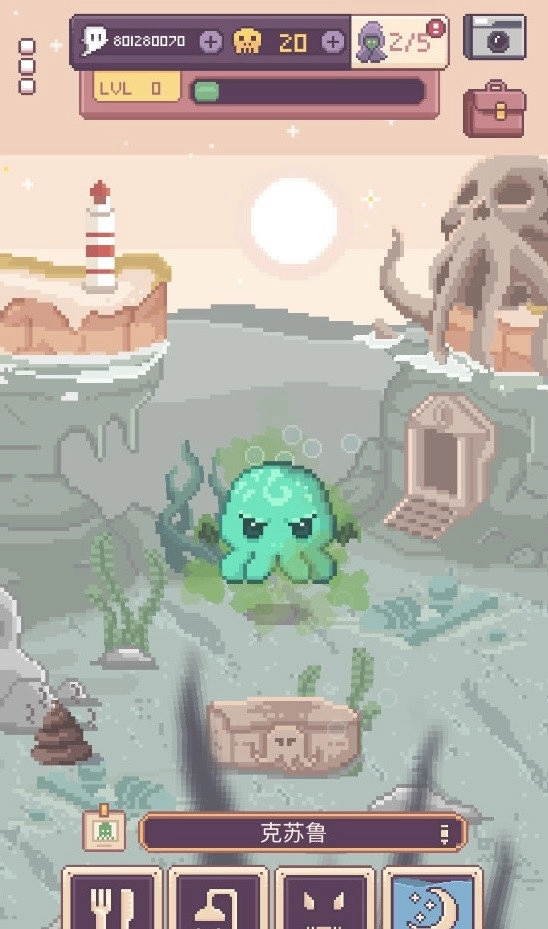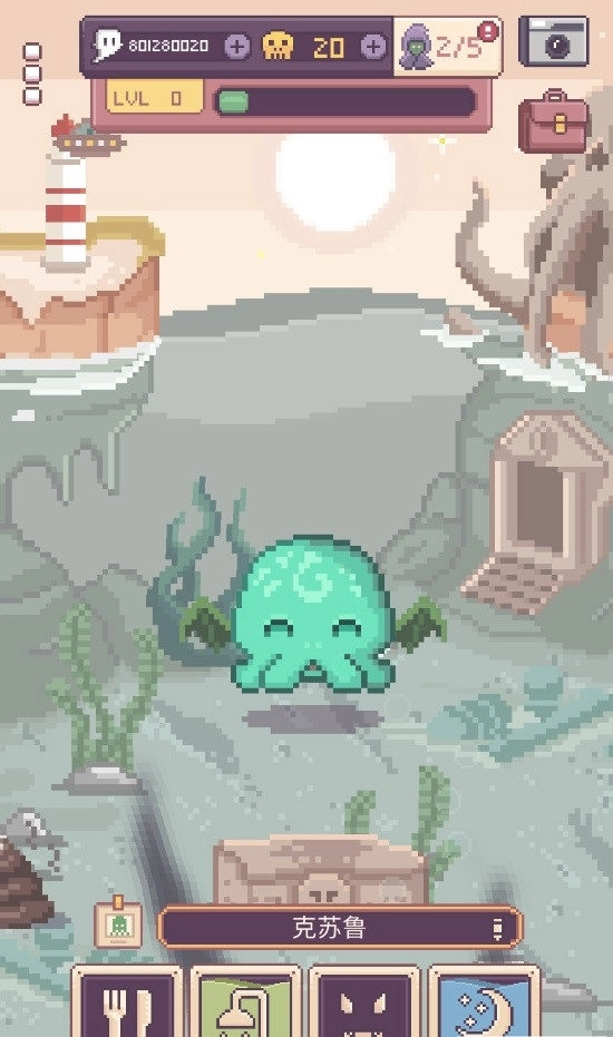 3.复古的画风让游戏的乐趣无形,可爱的克苏鲁需要你的保驾护航才能成长壮大。