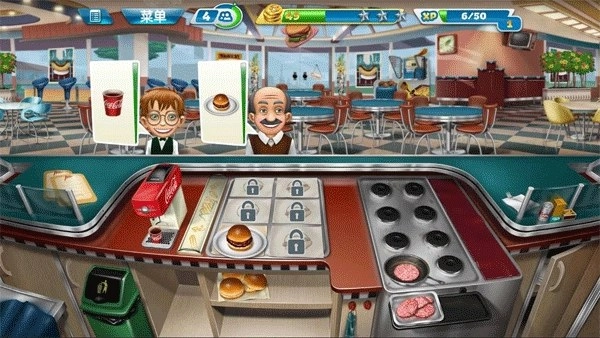 3、随着游戏进度不断推进,玩家能获取到更多种类的食材与道具,相应的操作难度也会逐步提升。这里有个实用小技巧分享给大家:不少顾客会倾向于点套餐,而只要给他们上一道食物,就能延长顾客的等待时间。所以,大家可以提前准备一些饮品,借助这种方式增加顾客的等待时长,进而提升整体的收益。