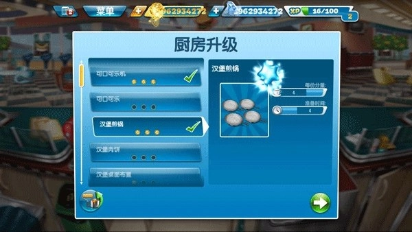 2、具体的操作步骤在此不做详细说明。玩家可通过持续解锁新食材,为汉堡和热狗赋予更多创意。在道具升级的优先级上,建议先升级使用频率较高的加热板,再升级保温板,之后是可乐机等饮品设备,原材料部分则可以暂时搁置升级。