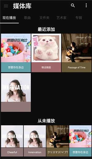 1、首先我们打开媒体库,在这里就可以看到音乐的封面。