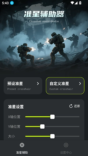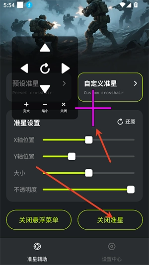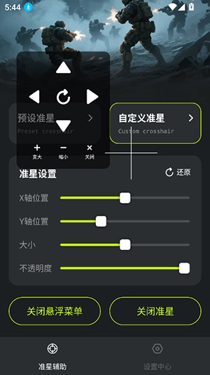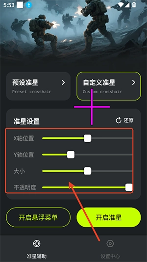 准星 + 安卓手机超实用的准星工具来啦!这是一款完全免费,且拥有超多准星样式的应用。在这里,你能够随心所欲地调节准星的颜色、大小以及透明度,使用起来简单便捷,还能自由设置所需内容,真的非常不错哦!欢迎大家免费下载体验。
